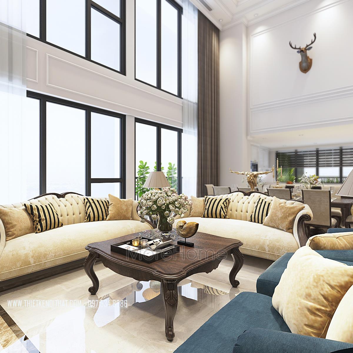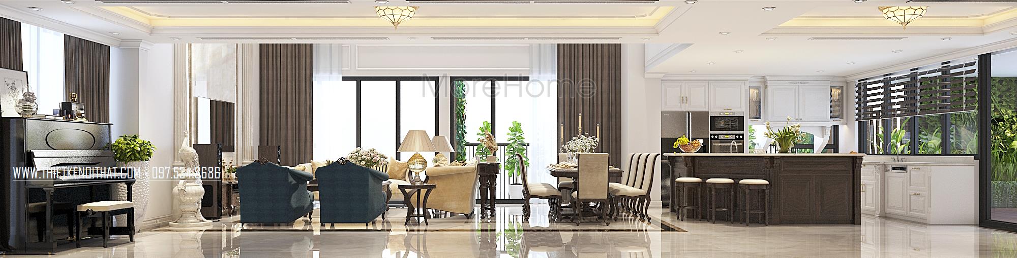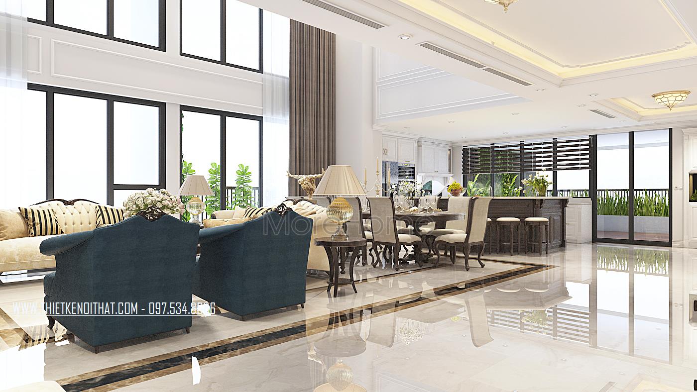 Thiết kế nội thất căn hộ Duplex Hapulico sang trọng với gỗ óc chó cao cấp
