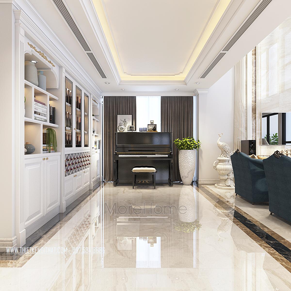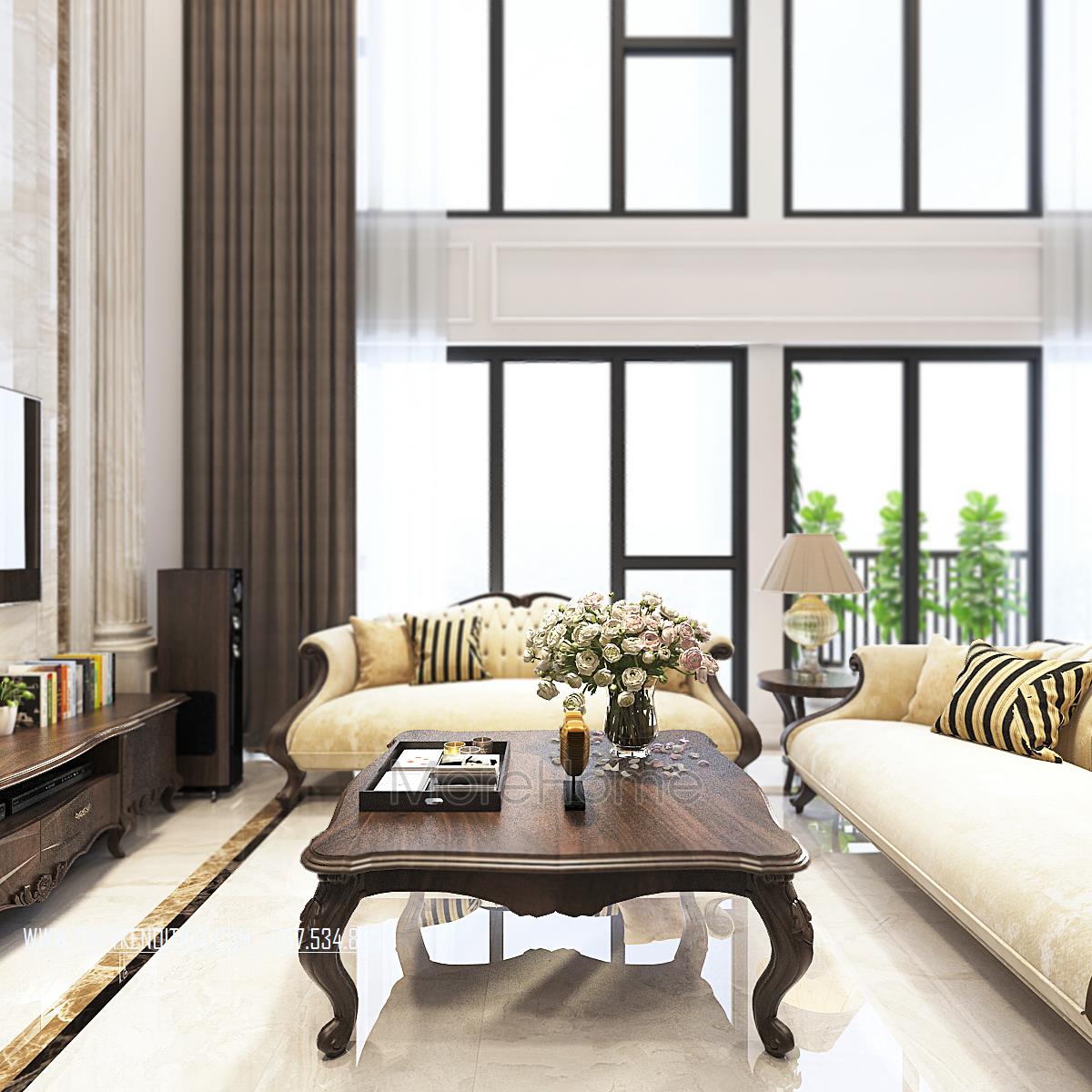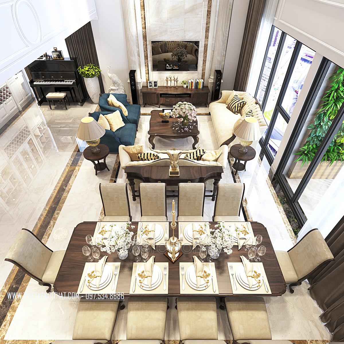 Thiết kế nội thất căn hộ Duplex Hapulico sang trọng với gỗ óc chó cao cấp