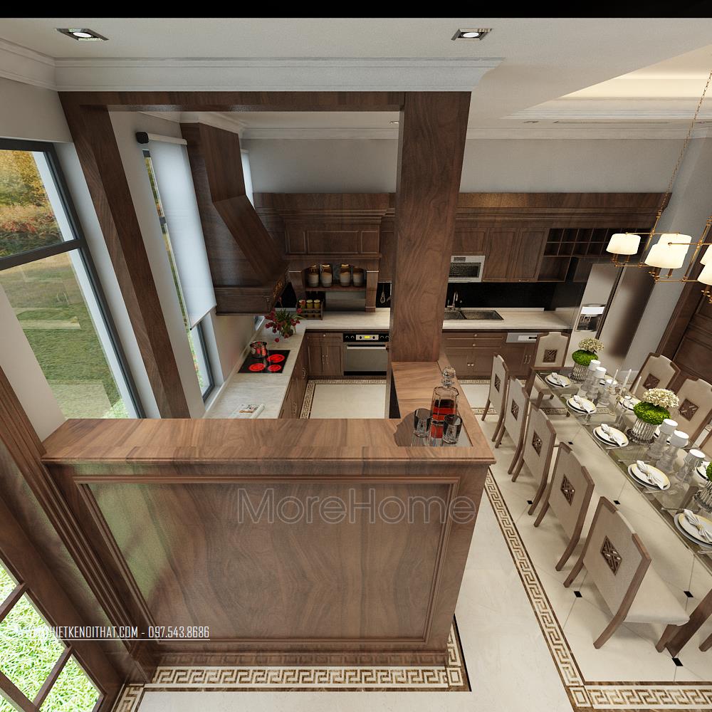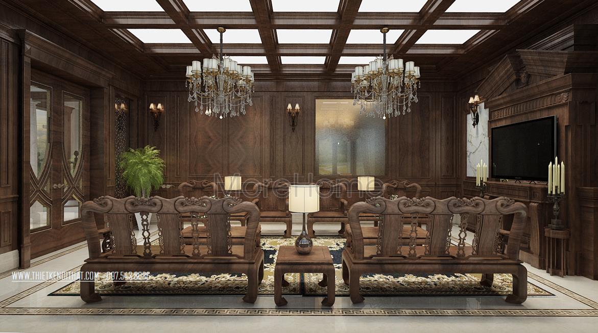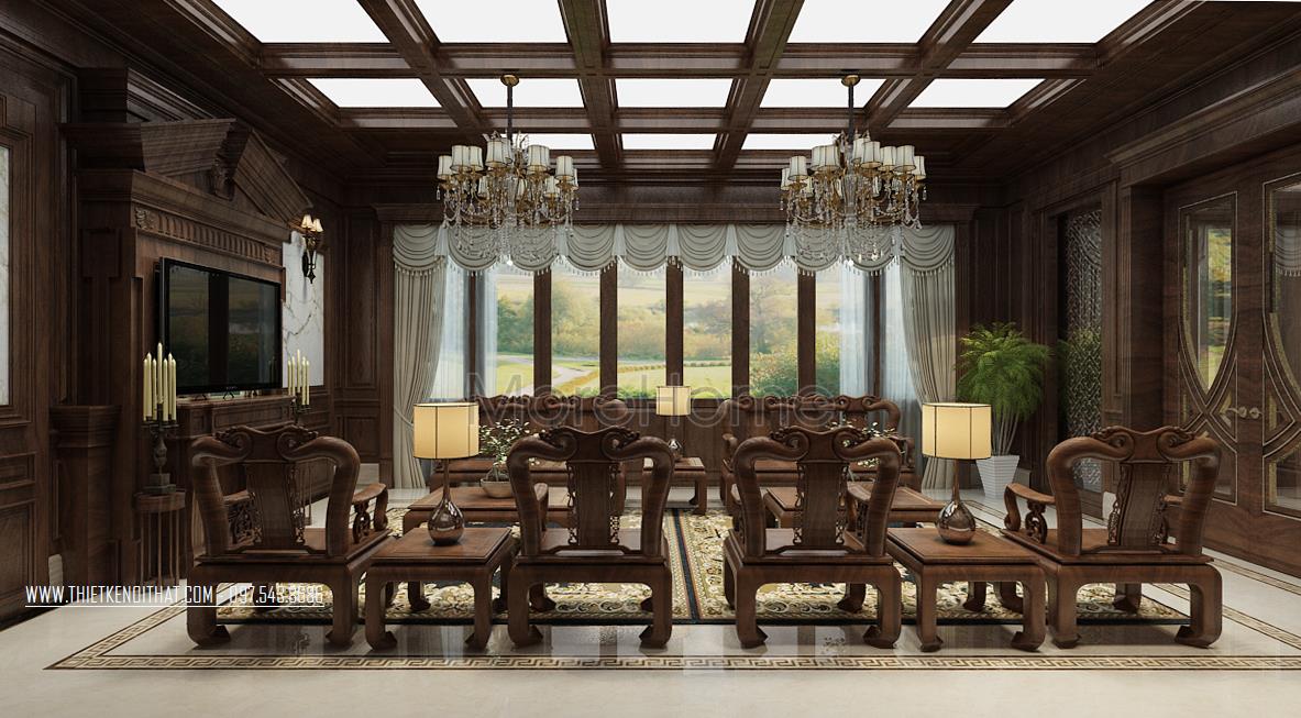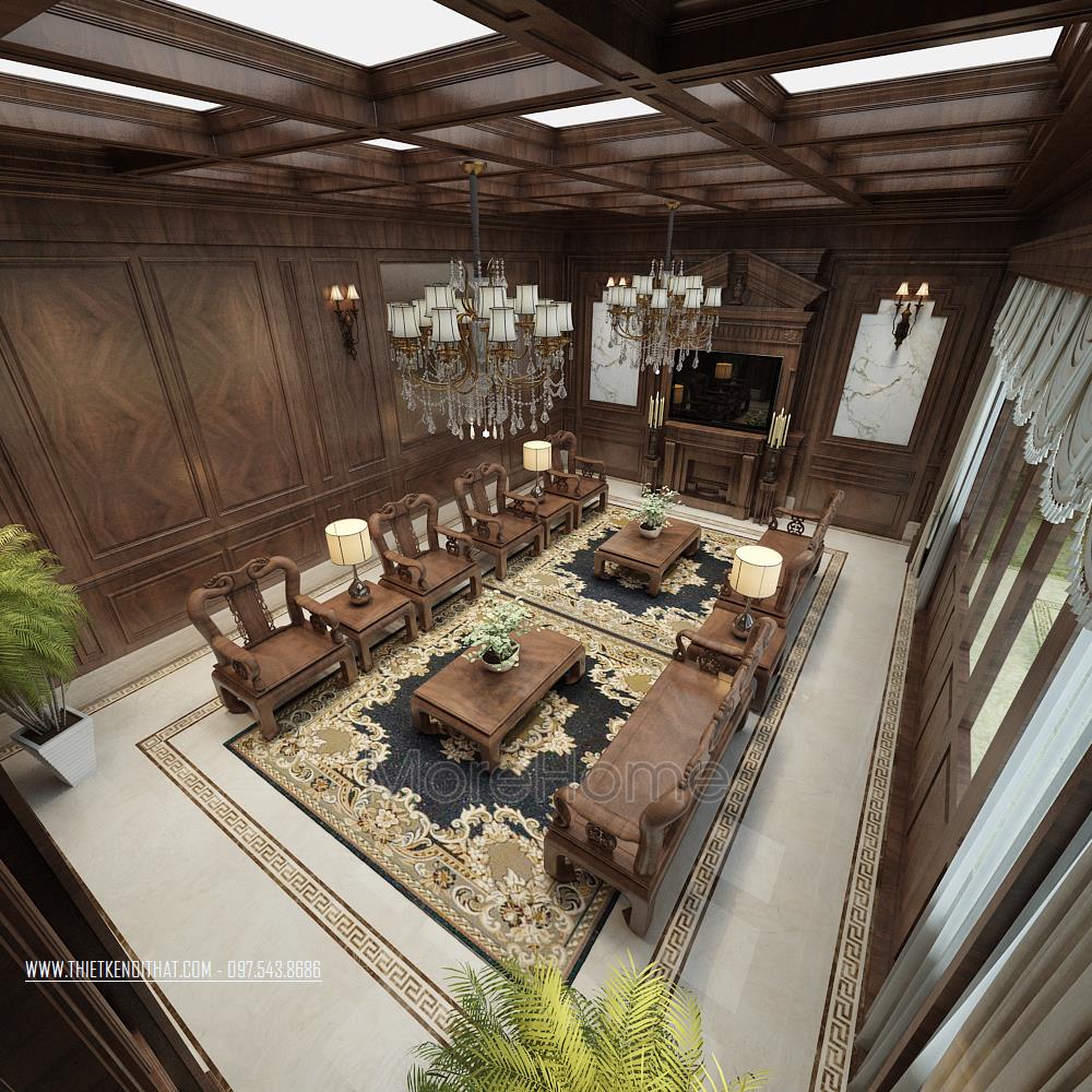Thiết kế nội thất biệt thự cao cấp gỗ óc chó
