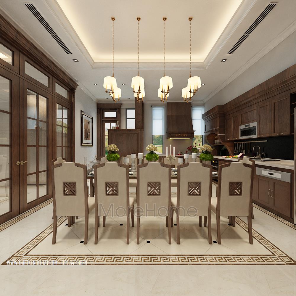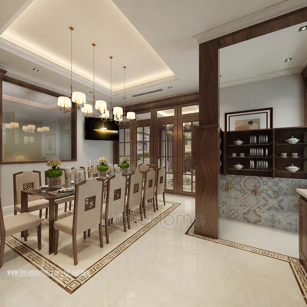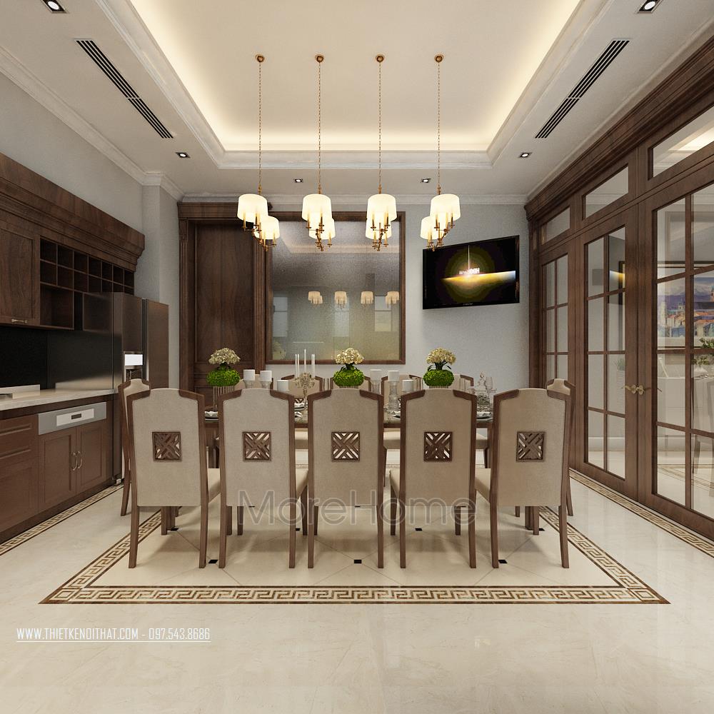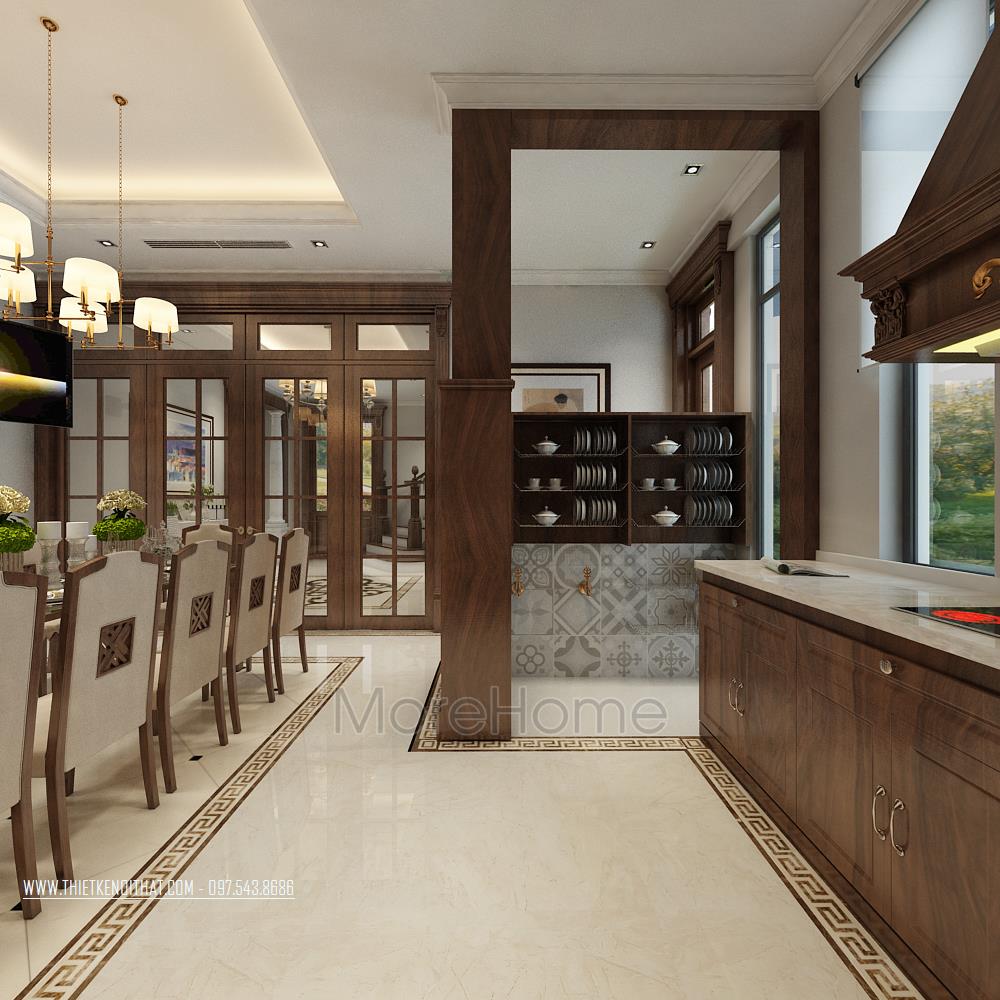 Thiết kế nội thất biệt thự cao cấp gỗ óc chó