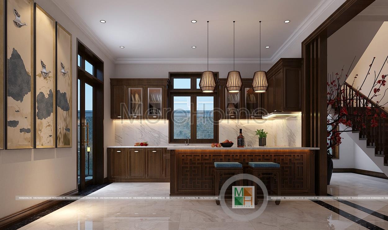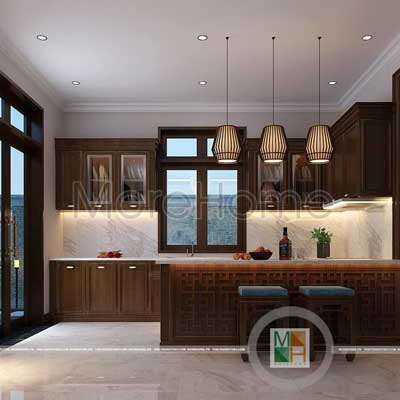 Thiết kế nội thất phòng bếp biệt thự gỗ việt