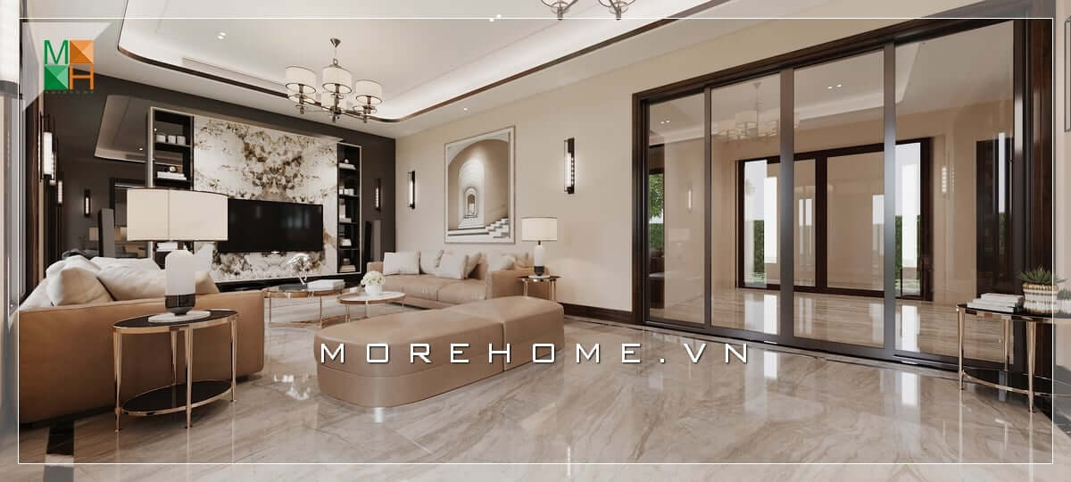 Thiết kế nội thất phòng khách sang trọng và đẳng cấp là những gì Morehome đã mang đến cho gia chủ tại biệt thự Hải Phòng.