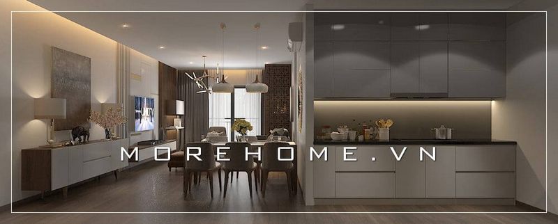 Morehome sử dụng thiết kế kệ tủ đơn giản đa ngăn, đảm bảo tính công năng và không làm ảnh hưởng đến diện tích sử dụng