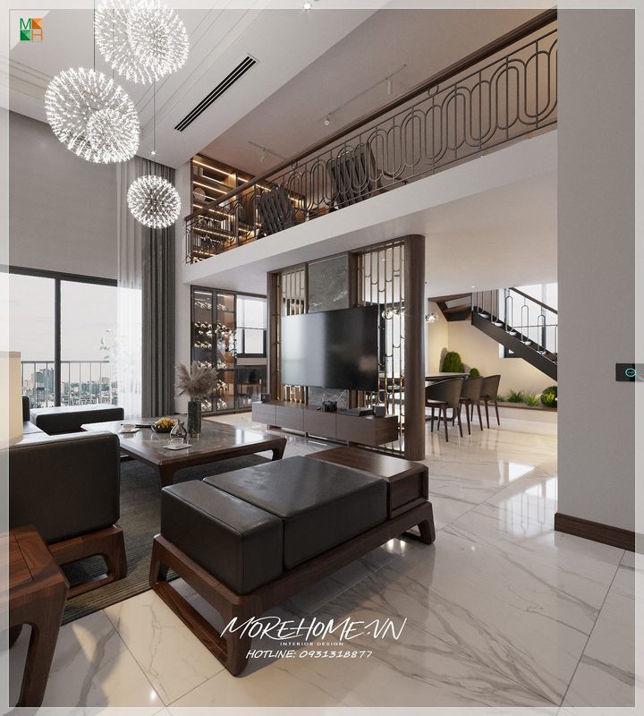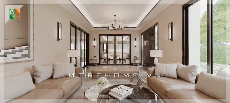MoreHome tập trung sử dụng các màu trắng, be, cát và oliu để làm cho không gian biệt thự trở nên sang trọng và sáng hơn.